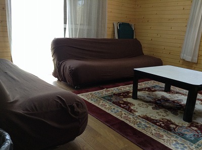 | 宿泊棟 ↓ | 一階の主要な部屋は、ラウンジとリビングで、合わせて20畳程。 区切って二部屋にして、ソファーベットで宿泊の部屋としても利用できます。 又、二部屋続き、各部屋区切りで、護身術、太極拳などの練習や、長座テーブルを出して、研修会、会議、食事スペースとして、多目的に使うことができます。 |